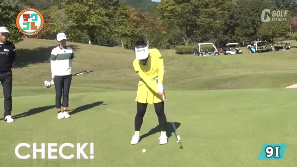 大江香織、飛距離を伸ばす方法 トップを低くしてインサイドから下ろして振り抜く